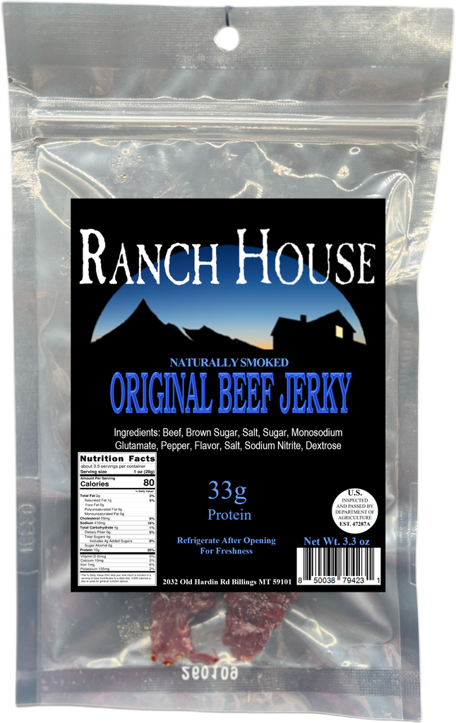 3.3oz or 4.5oz bag of beef jerky. Shelf stable until opened. Eat or refrigerate within 3 days of opening to preserve flavor.